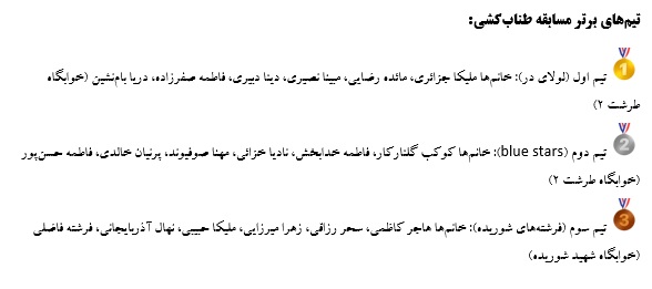 سومین شب هفتمین جشنواره بازیهای بومی و محلی در تاریخ 1404/08/13 در خوابگاه دختران طرشت 2 با شرکت 66 نفر در رشته دارت و 54 نفر در رشته طنابکشی در قالب 9 تیم 6 نفره برگزار و به نفرات برتر رشته دارت حکم قهرمانی و پک اقلام ورزشی و تیمهای اول تا سوم رشته طنابکشی حکم قهرمانی و کارت هدیه اهدا شد.
